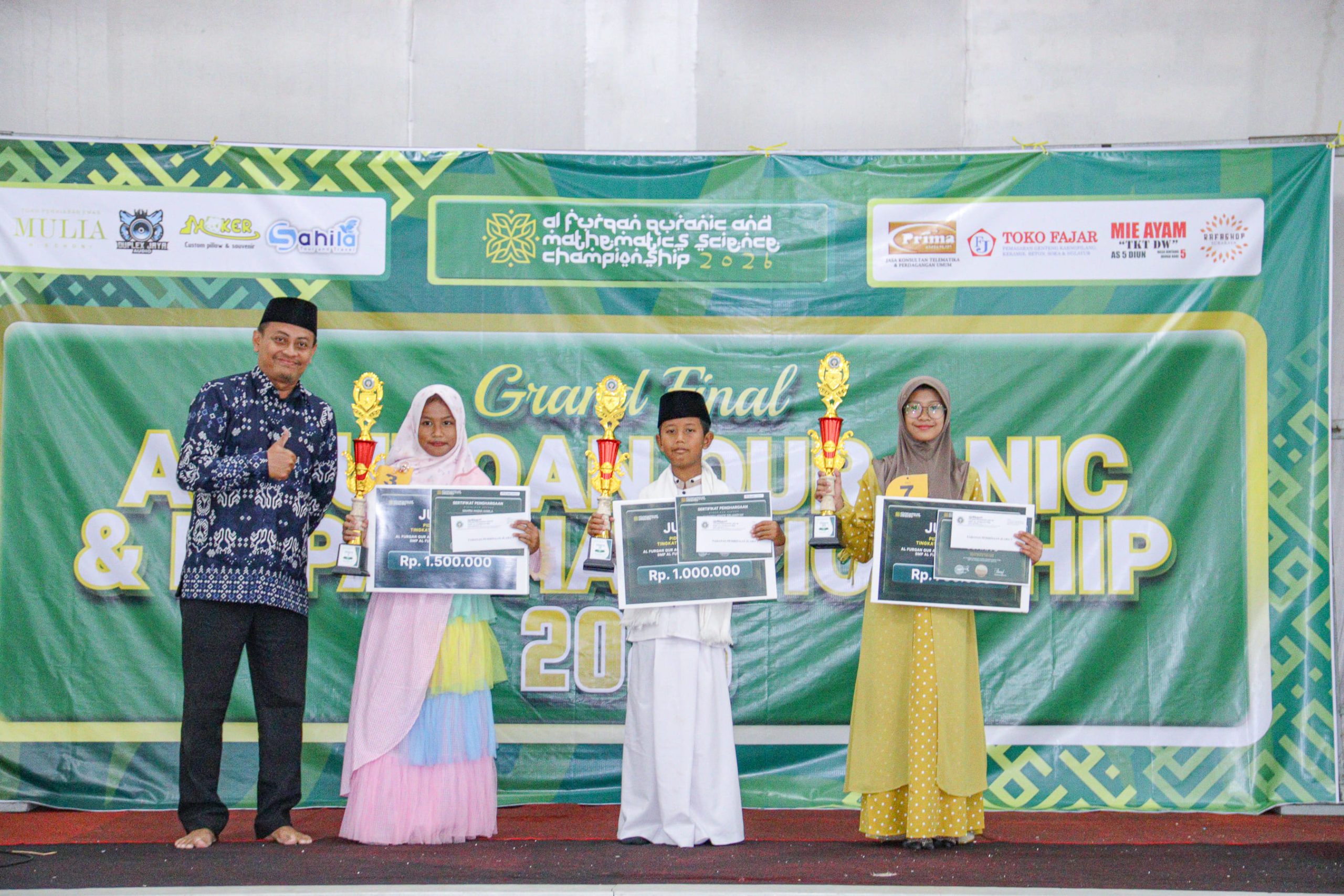 Selamat kepada para Jawara Al Furqan Qurani and MIPA Championship 2026. Melalui kompetisi ini kami harapkan siswa-siswi SD dan MI di Jawa Timur terus terinspirasi untuk belajar dan memperdalam Alquran dan Bidang Saintifik.